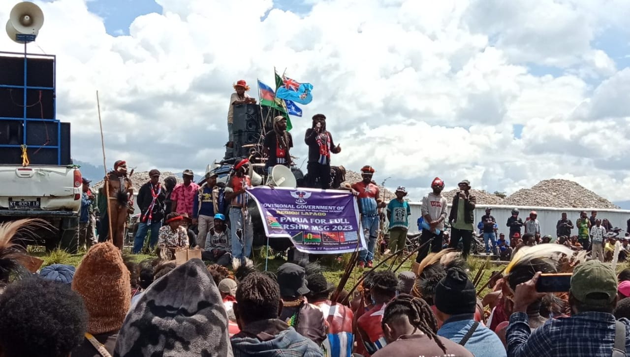 Globalindo.net // Dano Tabuni, Esekutor Agenda Politik Bangsa Papua dalam Pemerintah Sementara ULMWP mengatakan kepada rakyat Papua wilayah Lapago bahwa kita wajib bersyukur atas keputusan Konferensi Tingkat Tinggi Melanesian Spearhead Group (KTT-MSG) yang telah berlangsung di port Vila Vanuatu sesuai rencana yang dijadwalkan pada 23-24 Agustus 2023.