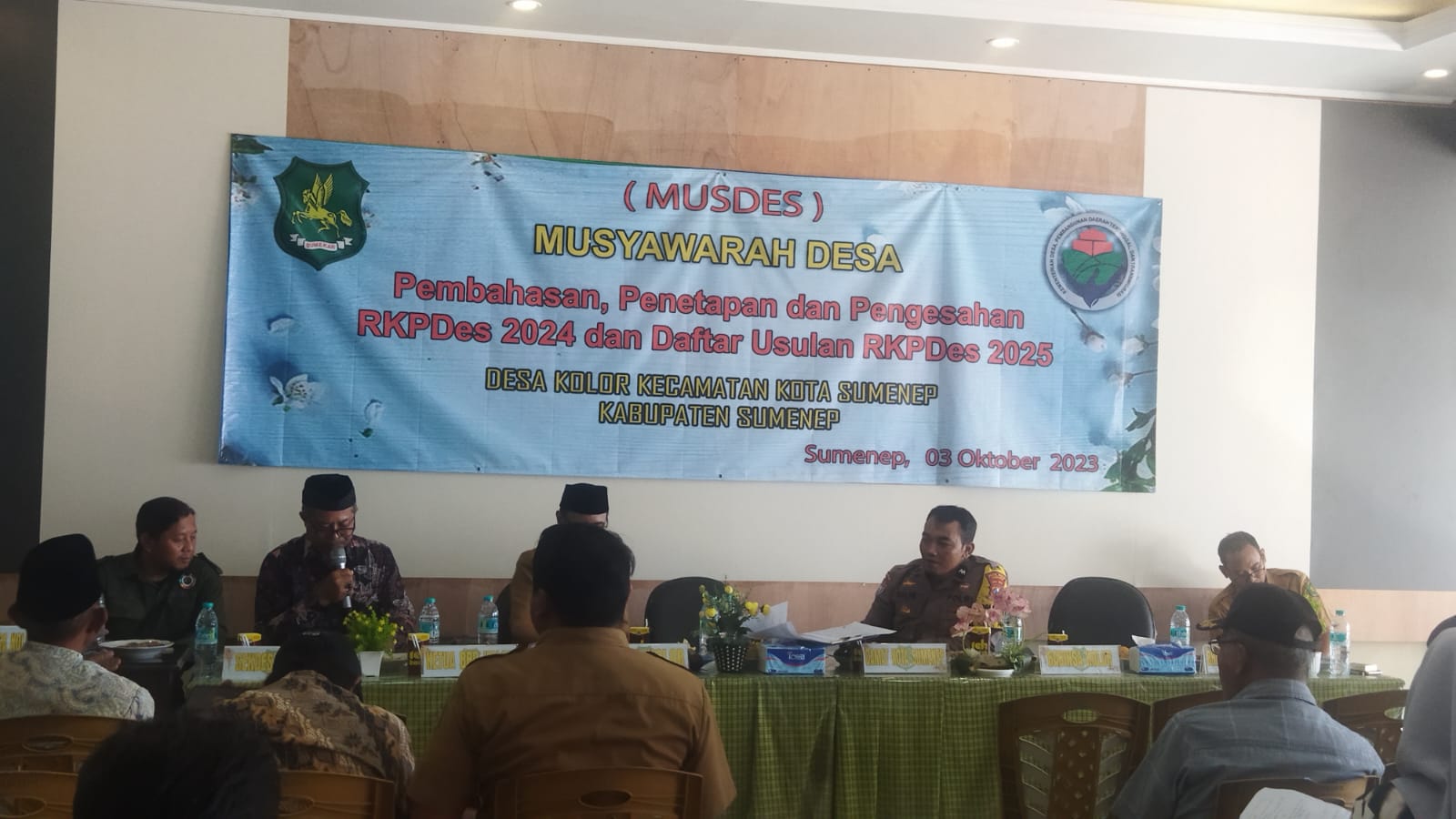 Terlihat hadir dalam Musdes tersebut Faruk Hanafi,S.Sos,M.si selaku Camat Kota Sumenep, serta terlihat hadir pula Banbin Kamtibmas, Bhabinsa Desa Kolor, RT dan RW Se-desa kolor, tokoh ulama, tokoh pemuda desa kolor, Pendamping Desa Kecamatan kota, Perangkat Desa kolor, Direktur BUM Desa, Ketua dan anggota BPD, Ketua PKK desa kolor.