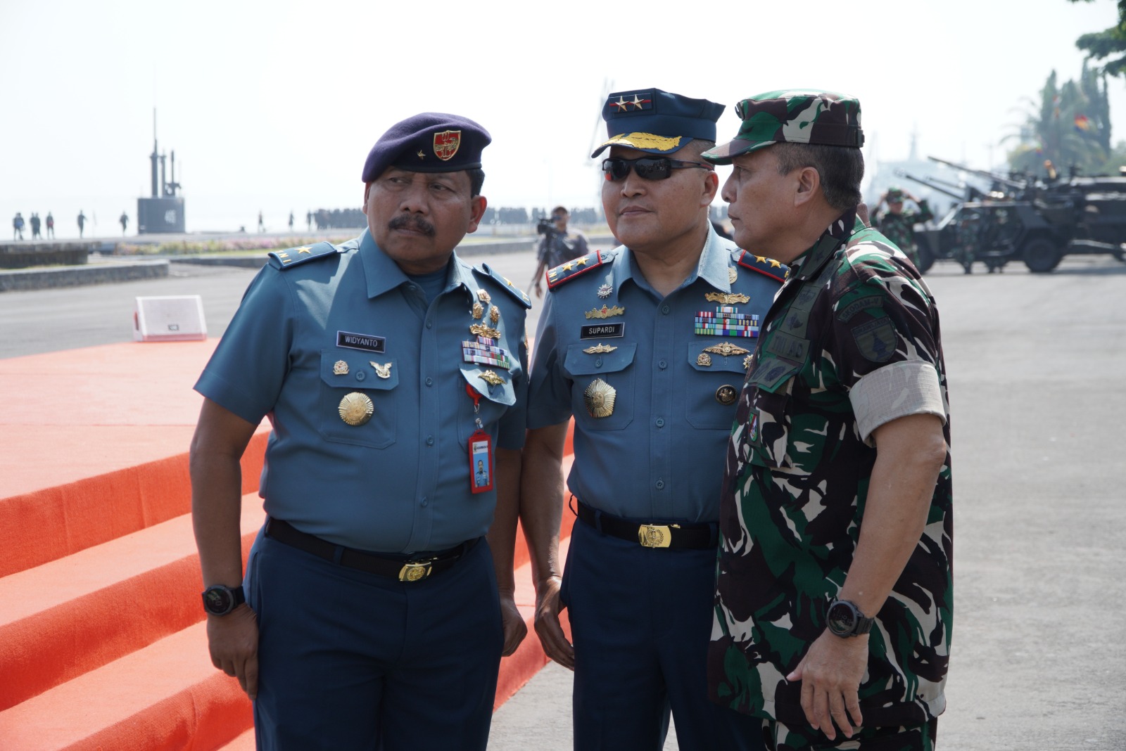 Turut mendampingi keduanya yakni Kapoksahli Koarmada II Laksma TNI Widyanto Pudyo Purnomo serta pejabat TNI lainnya.