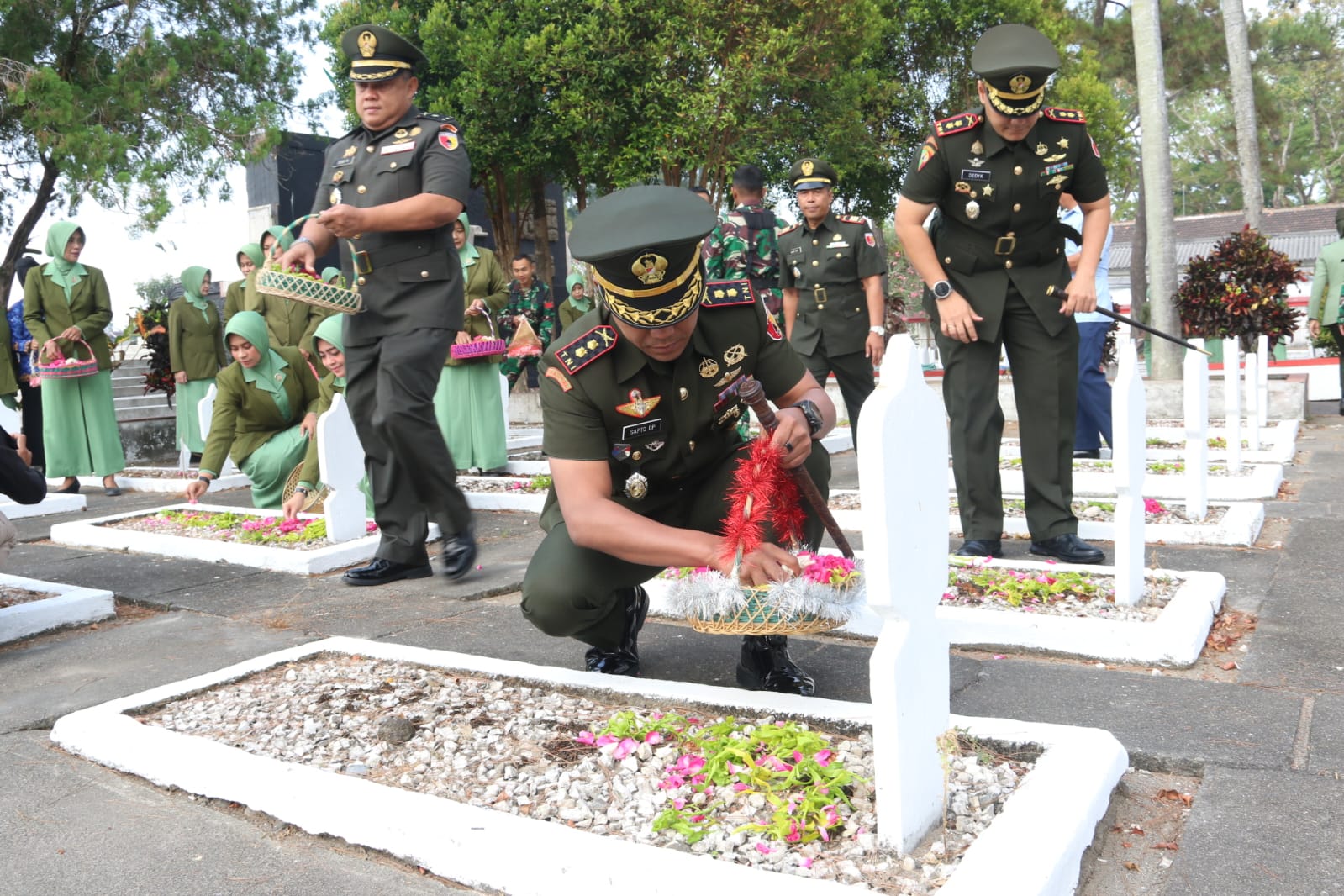 Ziarah rombongan dan tabur bunga ini, dipimpin langsung oleh Dandim 0808/Blitar Letkol Inf Sapto Dwi Priyono, S.E., dan diikuti anggota Kodim baik Perwira, Bintara, Tamtama, PNS, personel Yonif 511/DY, Angkatan Udara, Polkes 05.09.03, Sub Denpom V/1-3, Sub Denzibang, Minvet Blitar, Persit KCK Cabang XXII dan Persit KCK Cabang XXIV Yonif 511/DY.