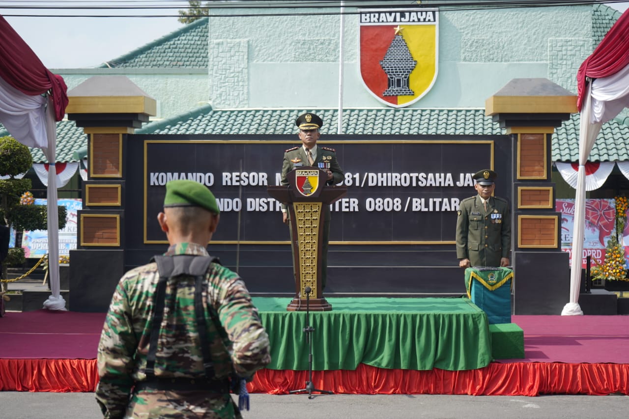 Dalam sambutannya, Dandim 0808 membacakan amanat Panglima TNI Laksamana TNI Yudo Margono, S.E., M.M., yang isinya sebagai berikut :