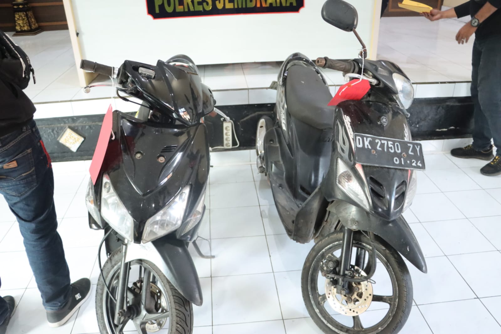“Pelaku mengakui perbuatannya, yakni mencuri sepeda motor Honda Vario warna hitam pink dengan nomor polisi DK 6426 UP di lokasi pertama dan sepeda motor Yamaha Mio warna hitam dengan nomor polisi DK 2750 ZY di lokasi kedua, selain di Jembrana Pelaku juga beraksi di 4 lokasi lainya di Bali, seperti Gianyar, Bangli, Tabanan dan Badung,” ungkap Juliana saat Gelar Kasus di Aula Mapolrea Jembrana, Jum’at (06/10/2023).