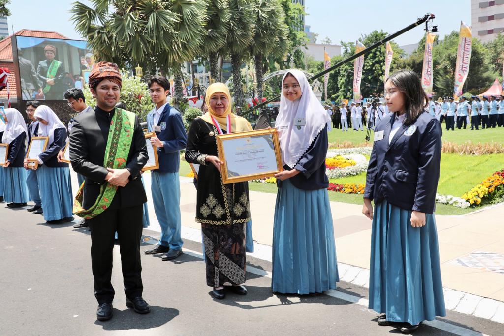 Museum Rekor Indonesia (MURI) pun memberikan “kado” spesial di peringatan Hari Jadi Jawa Timur. Penghargaan Rekor MURI diberikan kepada Gubernur Khofifah sebagai pemrakarsa karya mural sebanyak 2.376 yang diikuti seluruh satuan pendidikan SMA, SMK, SLB se-Jatim dengan tema prestasi Gubernur dan Wakil Gubernur Jawa Timur, penanaman 19.038 pohon secara serentak di lingkungan satuan pendidikan SMA, SMK, SLB se-Jatim ketika MPLS, pemberian santunan anak yatim sebanyak 23.330 orang di seluruh satuan pendidikan SMA, SMK, SLB se-Jatim, dan 260 kendaraan listrik hasil konversi karya siswa SMA Jawa Timur.