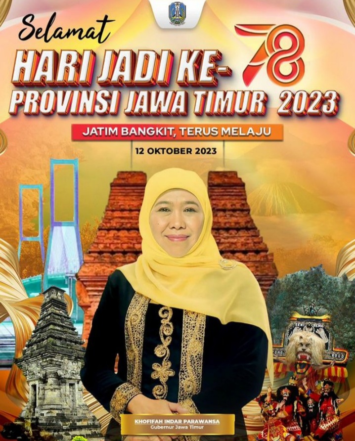 “Di HUT ke-78 ini kami ingin mengajak semua masyarakat Jawa Timur untuk memanggil memori tentang motto Jer Basuki Mawa Beya dalam kerja keras kerja sukses kerja fokus. Pengorbanan untuk mencapai ritme menuju kesuksesan. Ini juga menjadi penguatan kepada pemuda di Jatim terutama karena mereka akan menjadi generasi emas Indonesia Emas 2045,” katanya.