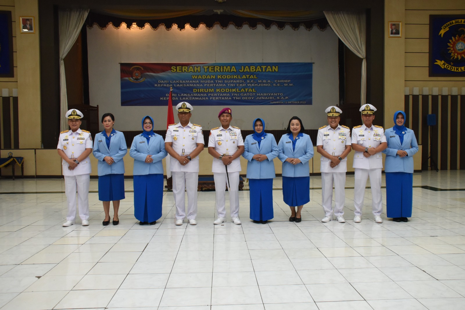 Adapun pergantian pejabat tersebut yaitu, Wadan Kodiklatal dari Laksda TNI Supardi yang merupakan Alumni AAL Angkatan 36 Tahun 1990 kepada Laksma TNI Eko Wahjono Alumni AAL Angkatan 38 Tahun 1992. Sedangkan jabatan Dirum Kodiklatal diserahterimakan dari Laksma TNI Gatot Hariyanto Alumni AAL Angkatan 37 Tahun 1991 kepada penggantinya Laksma TNI Dedy Junaidi Alumni AAL Angkatan 41 Tahun 1995.