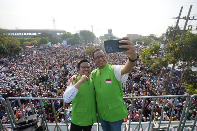 “Di Jawa Timur, di sini dulu berkumpul para pahlawan. Ini tanah para pejuang, tanah tempat lahirnya para pahlawan. Sekarang kita berkumpul di tanah ini untuk menyatakan semangat perubahan untuk Indonesia. Kalau Jawa Timur menggelorakan semangat perubahan, maka (daerah) yang lain akan mengikuti gelombang perubahan itu,” terang Anies.