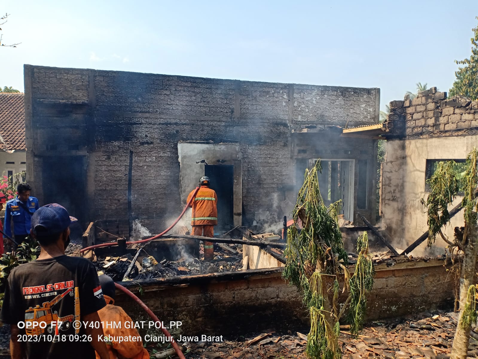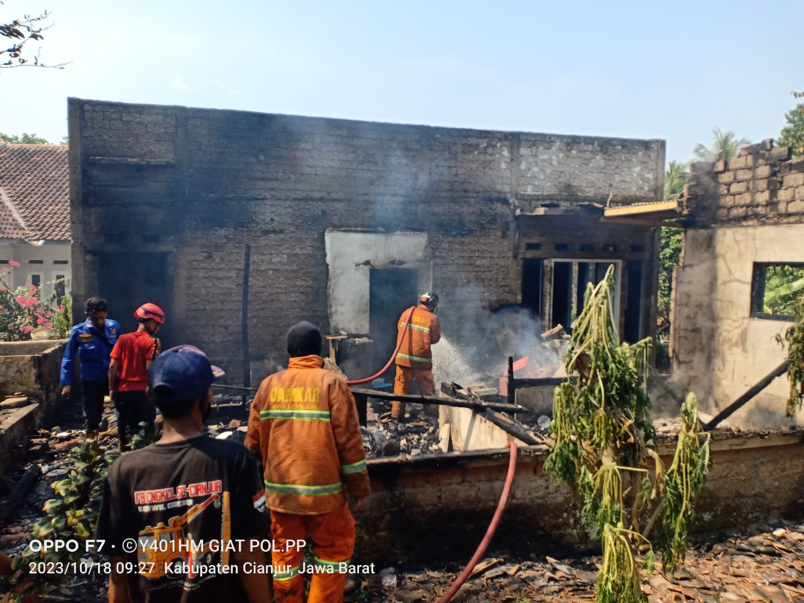 ” Telah terjadi Kebakaran satu unit rumah pada hari ini hari Rabu 18 Oktober 2023 di Kampung Wates Desa Cibaregbeg Kecamatan Cibeber Cianjur rumah semi permanen atas nama H.Ayi dan sebagian rumah habis terbakar untuk korban jiwa tidak ada kebakaran tersebut di akibatkan kelalaian pemilik rumah.” Ungkap Yadi Anggota Satpol PP Kecamatan Cibeber. **(Rhoest)