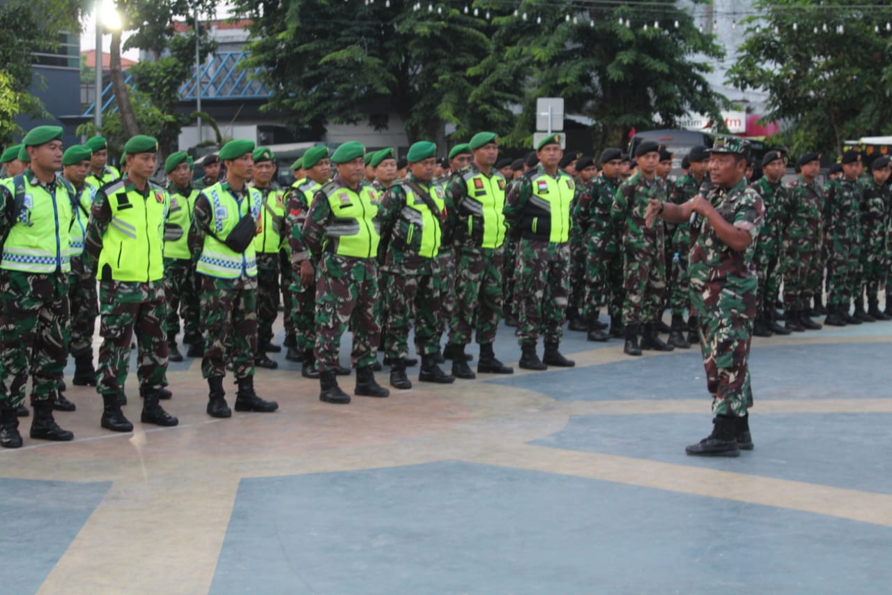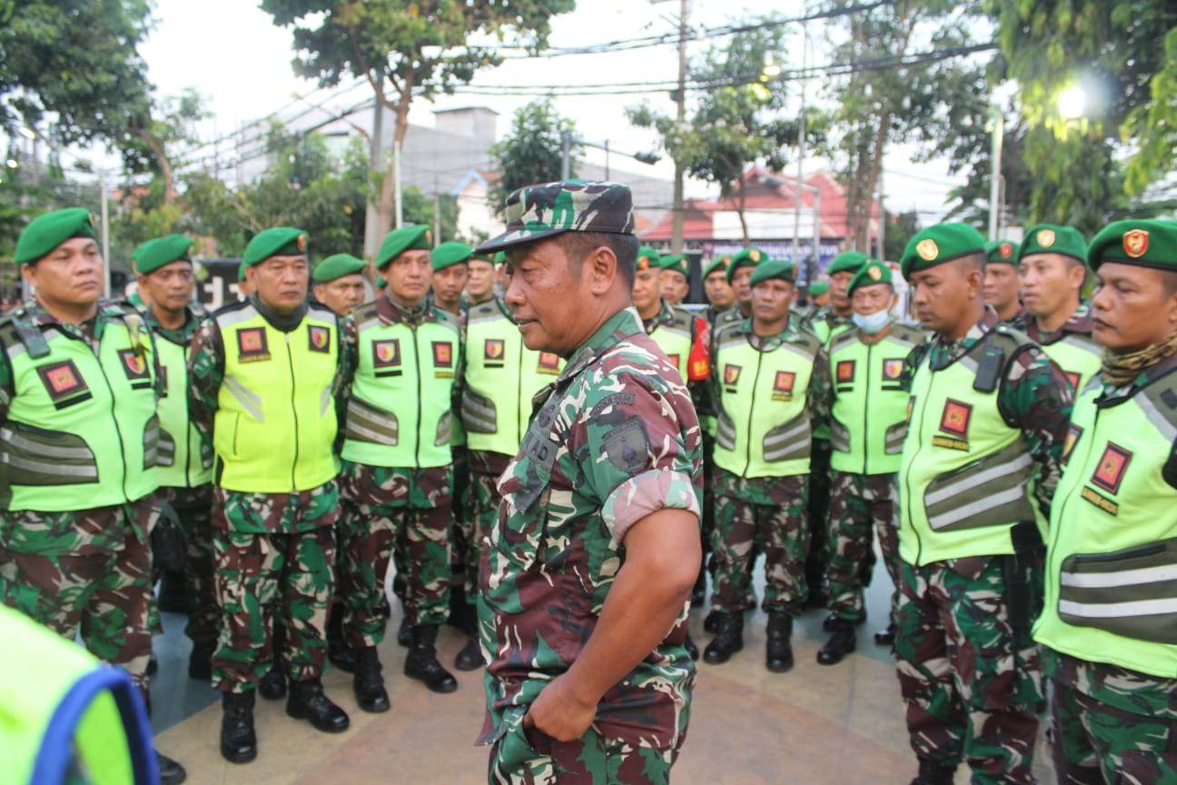 Bertempat di Taman Kartika Tegalsari Kec. Tegalsari, Kodim 0830/Surabaya Utara bersama satuan yang tergabung dalam Satgas Pam Rute wilayah Surabaya melaksanakan Apel Pengecekan Pasukan menjelang kedatangan Ibu Presiden dan Ibu Wakil Presiden beserta rombongan, Kamis (26/10/2023).