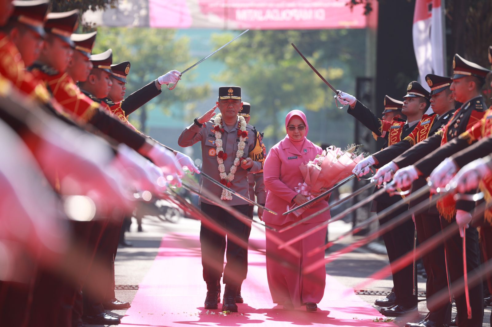 Kedatangan Irjen Pol Imam Sugianto beserta istri di Markas Polda Jatim disambut oleh Wakapolda Jatim Brigjen Pol Akhmad Yusep Gunawan dan Pejabat Utama Polda Jatim serta pasukan dari TNI-Polri.