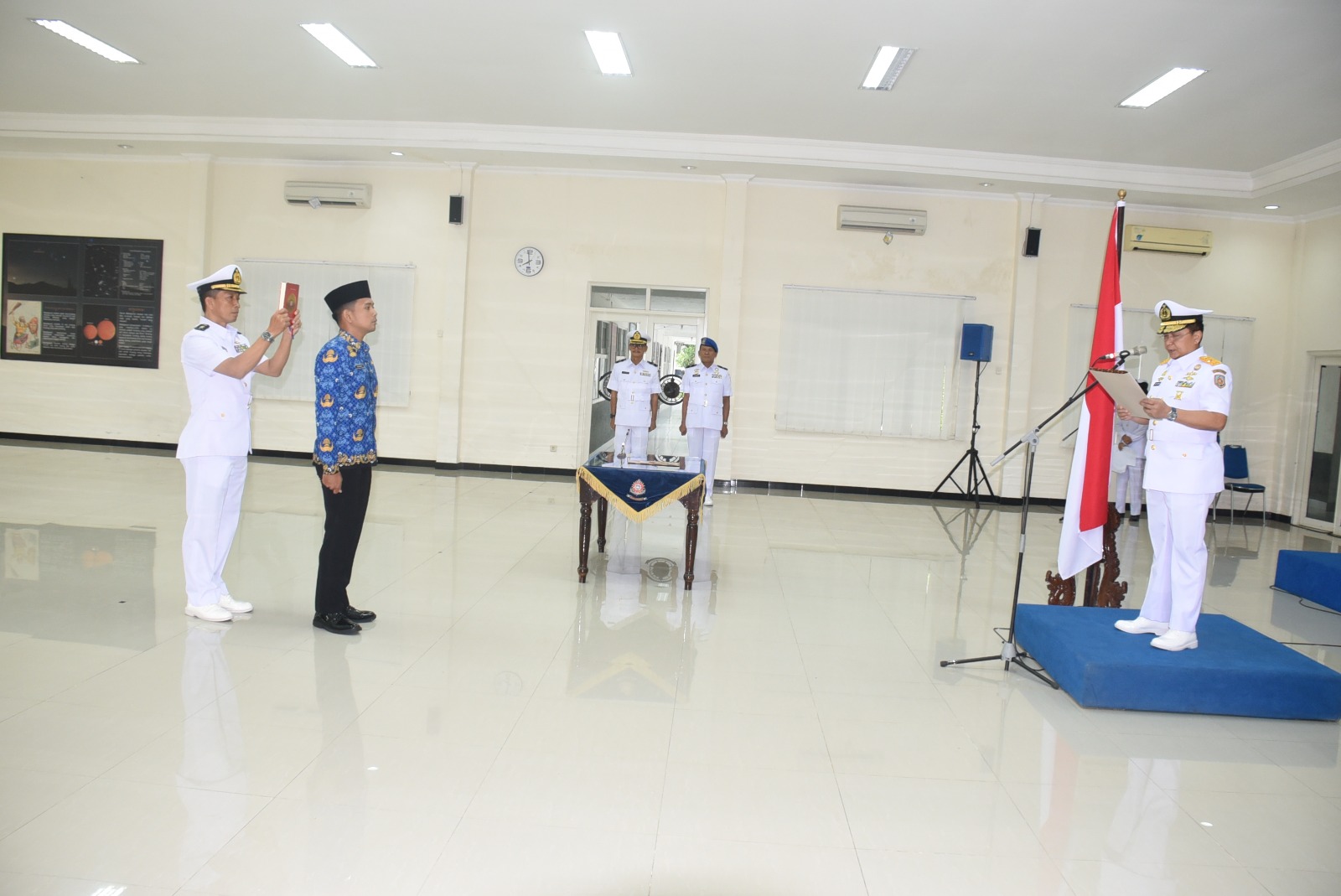 SURABAYA//Globalindo.net – Sebanyak 19 Pegawai Negeri Sipil (PNS) Komando Pembinaan Doktrin, Pendidikan dan Latihan TNI Angkatan Laut (Kodiklatal) resmi melaksanakan pengambilan sumpah sekaligus pelantikan sebagai PNS baru di jajaran Kodiklatal Tahun 2023 yang dpimpin oleh Direktur Umum (Dirum) Kodiklatal Laksma TNI Dedy Junaidi yang mewakili Komandan Kodiklatal, Letjen TNI Marinir Nur Alamsyah, bertempat di Gedung Betelgues Pusdiklapa Kodikopsla Kodiklatal, Bumimoro Surabaya. Rabu, (01/11/2023).