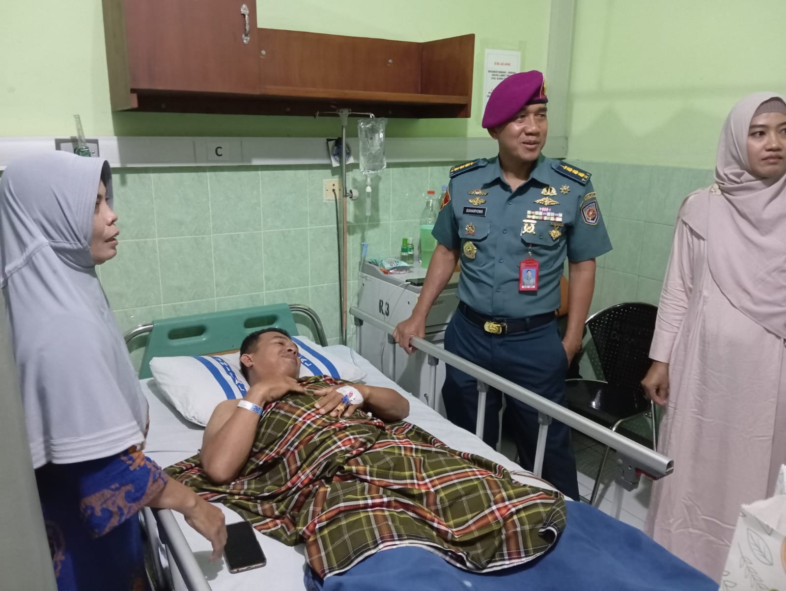 SURABAYA//Globalindo.net – Sebagai bentuk perhatian, Kepala Dinas Penerangan (Kadispen) Kodiklatal Kolonel Marinir Suharyono didampingi Istri dan putranya mengunjungi Serma Wahyudin yang baru saja melaksanakan operasi tulang lumbar, setelah beberapa waktu lalu mengalami musibah saat sedang memperbaiki rumah yang berlokasi di Perumahan TNI AL Driyorejo, Gresik. Kunjungan tersebut bertempat di ruang perawatan H1 Nomor 4 RSPAL dr. Ramelan. Selasa, (07/11/2023).