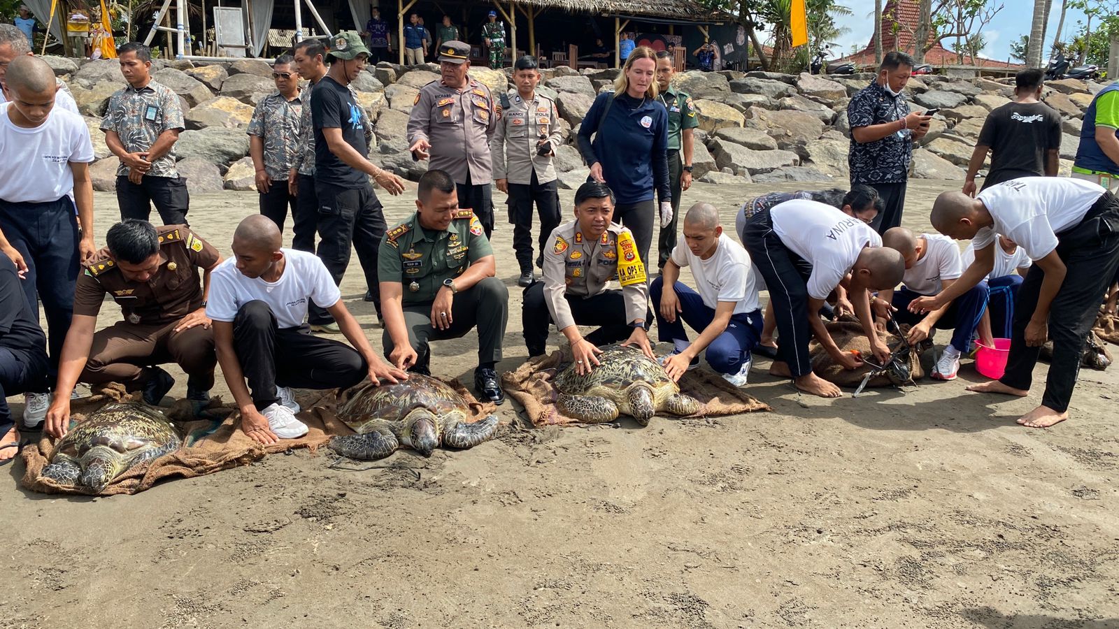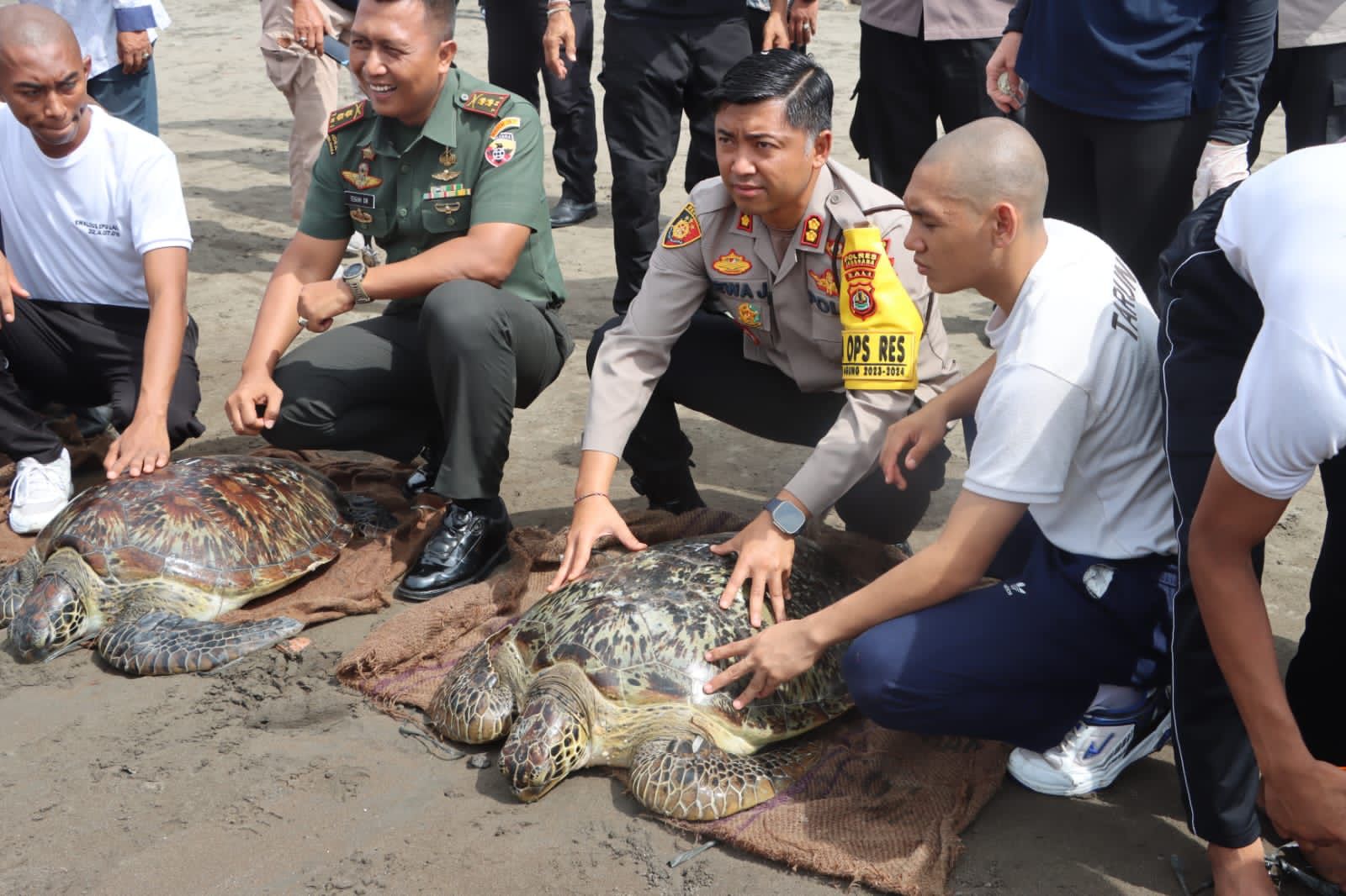 Jembrana – Bali, Globalindo.net // Kapolres Jembrana AKBP I Dewa Gde Juliana, S.H., S.I.K., M.I.K., memimpin dan pelepasliaran 19 ekor Penyu Hijau (Chelonia Mydas)