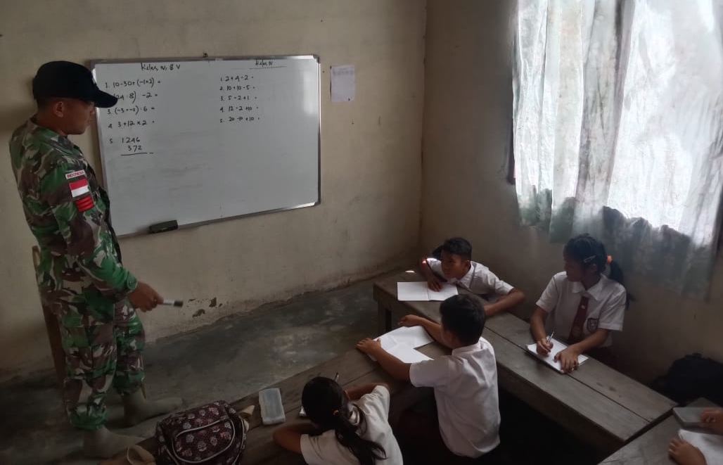 Mencerdaskan Anak-anak Perbatasan, Satgas Pamtas RI-Mly Yonarmed 16/TK Menjadi Tenaga Pendidik di Guntembawang