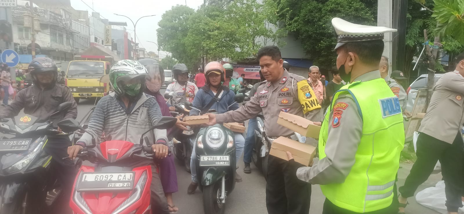 Terlihat dari raut wajah warga dan pengendara atau ojol yang menerima makanan nasi kotak dari kepolisian Polsek Simokerto ini sangat senang dan gembira