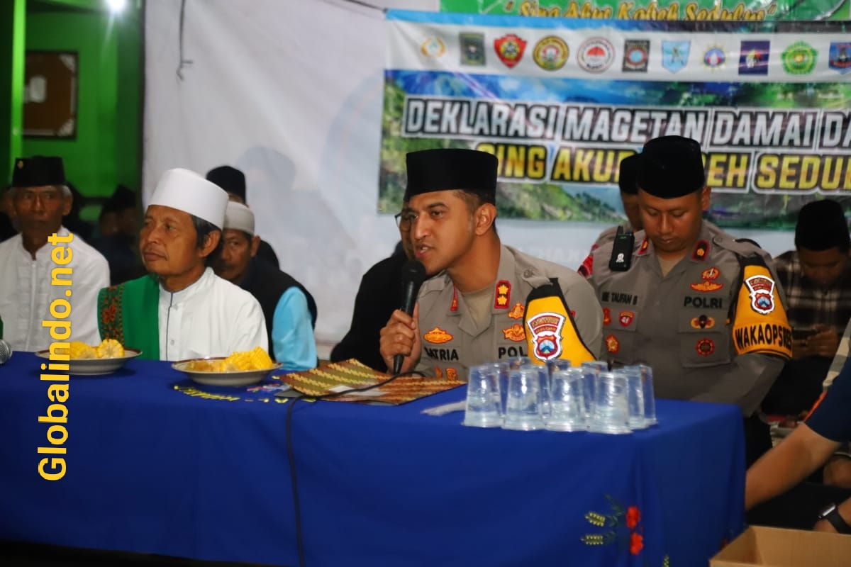 Kapolres Magetan, AKBP Satria Permana mengapresiasi pelaksanaan deklarasi Pemilu Damai dari Paguyuban Perguruan Silat se Kabupaten Magetan.