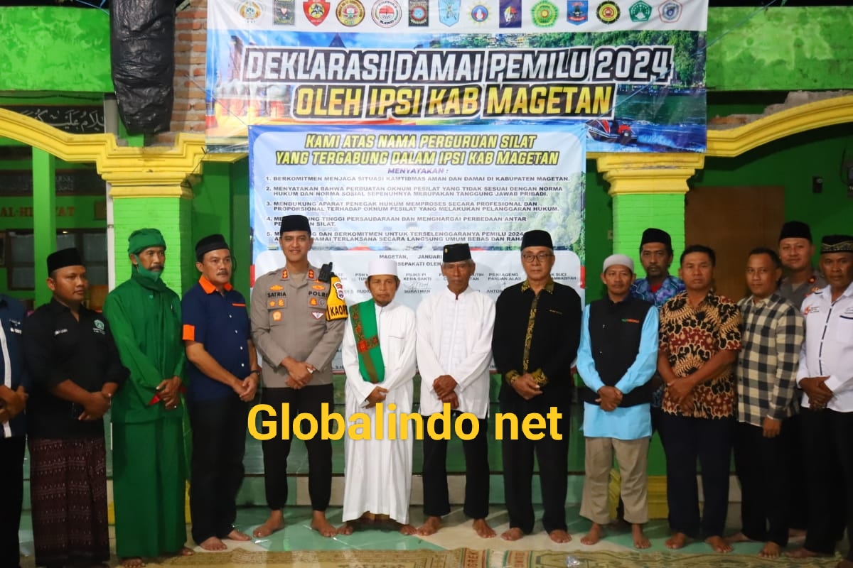 MAGETAN, Globalindo.net – Guna menjaga kondusifitas masa kampanye hingga pelaksanaan Pemilu 2024, Polres Magetan menempuh langkah strategis dengan mengajak semua perguruan silat tergabung di Ikatan Pencak Silat Indonesia (IPSI) terlibat aktif menciptakan atmosfer damai selama Pemilu.