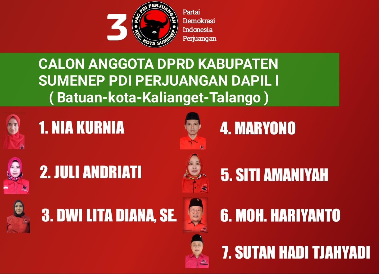 Adapun daftar calon legelislatif PDIP untuk dapil I Kabupaten sumenep