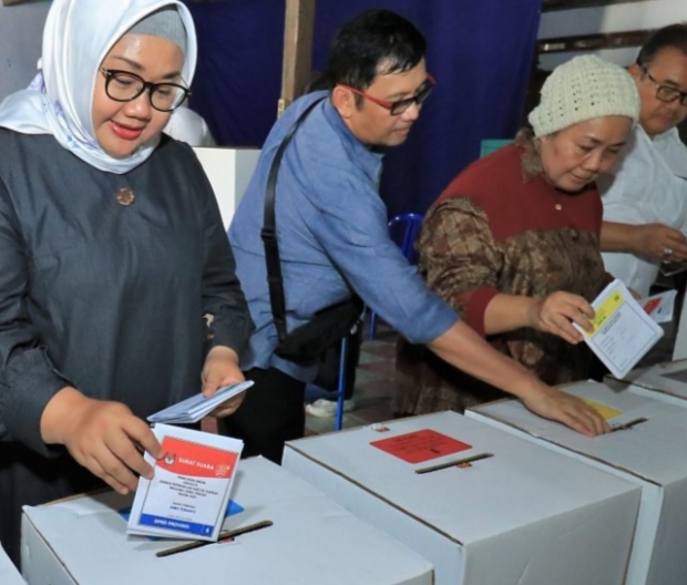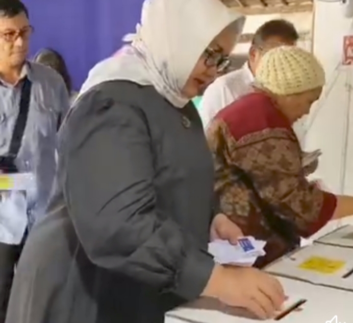 Bupati Yuni menceritakan pengalamanya saat menyalurkan hak pilihnya pada Pemilu kali ini, Ia mengaku butuh waktu sekitar lima menit untuk mencoblos.