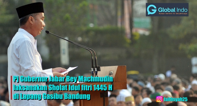 Jawa Barat, globalindo.net // Pj Gubernur Jawa Barat Bey Machmudin bersama sebagian masyarakat Kota Bandung dan sekitarnya melaksanakan Sholat Idul Fitri 1445 H di Lapang Gasibu, Kota Bandung Rabu (10/4/2024).