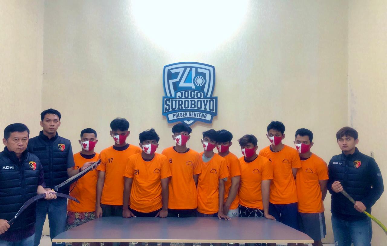 Dengan berbekal rekaman CCTV dan keterangan beberapa saksi di lokasi anggota Reskrim Polsek Genteng bergerak cepat dengan membutuhkan waktu hanya 1×24 jam, 22 orang pemuda berhasil diamankan dari tempat yang berbeda.