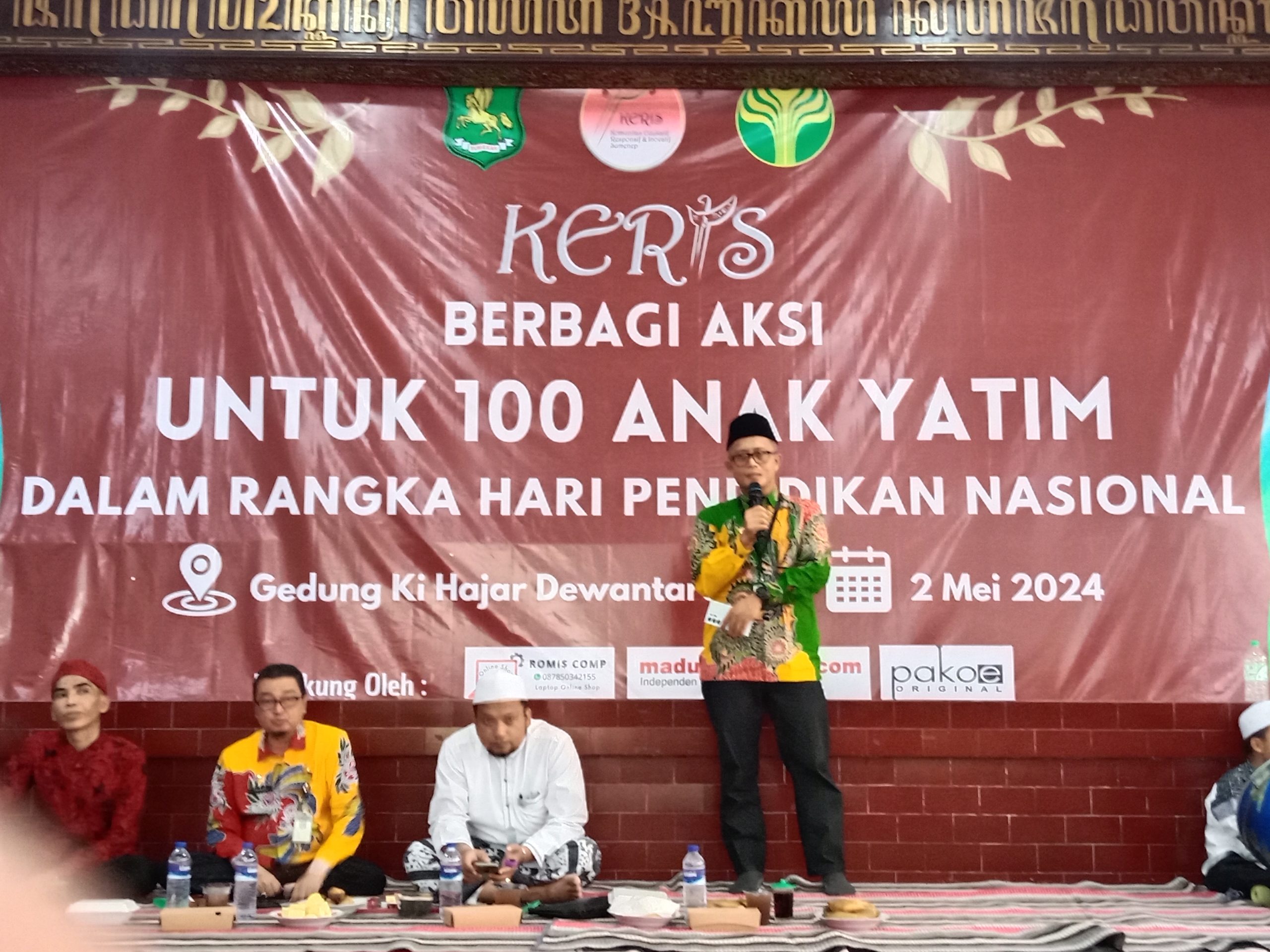 Sumenep, Globalindo.net // – Komunitas Keris gelar acara “Berbagi Aksi Untuk 100 Anak Yatim” Tahun 2024 dalam rangka Hari Pendidikan Nasional yang dihadiri oleh Direktur Utama (Dirut) BPRS Bhakti Sumekar Hairil Fajar.