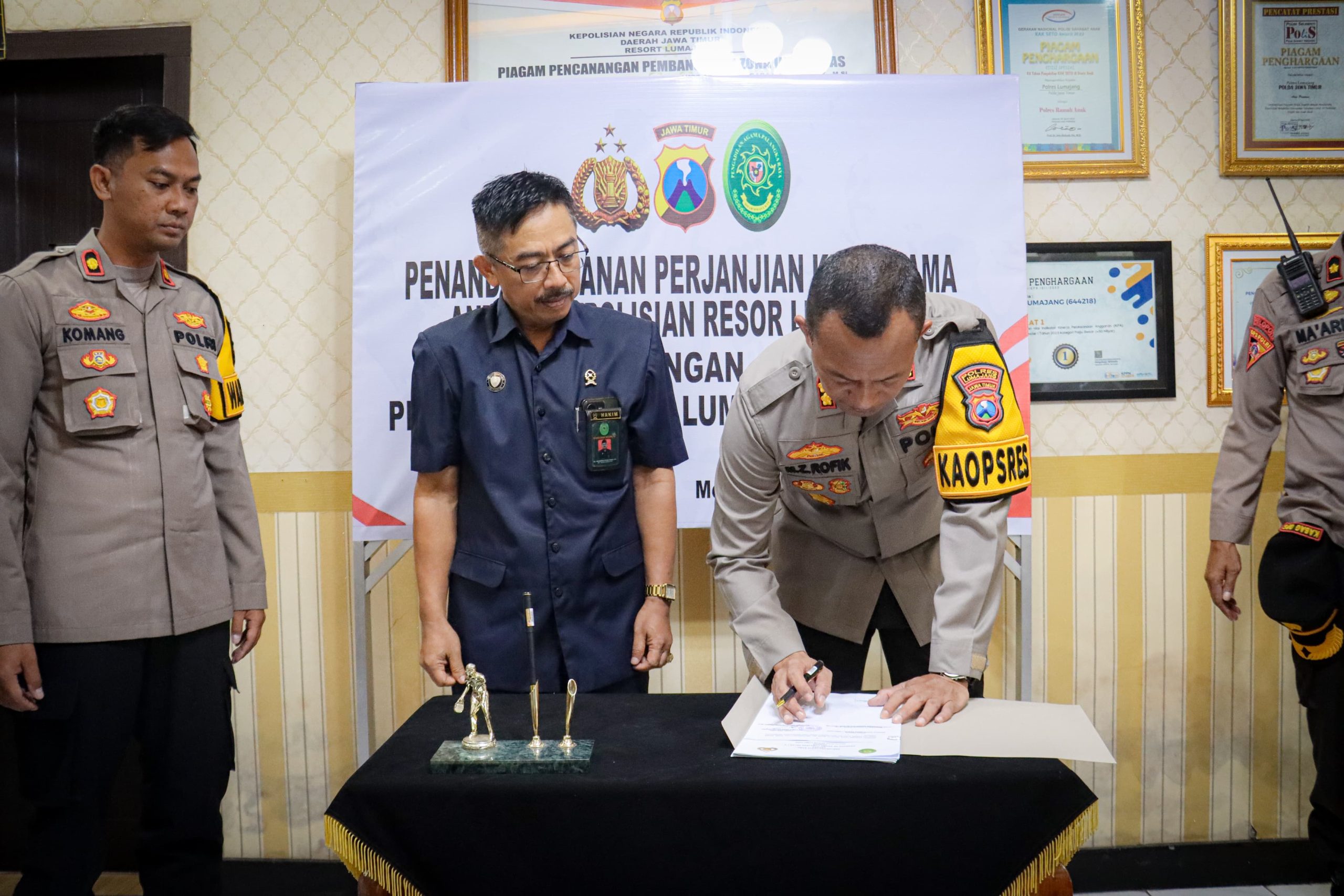 Penandatanganan Perjanjian Kerjasama dengan Pengadilan Agama dilaksanakan di Lobi Mapolres Lumajang, Rabu (8/5/2024).