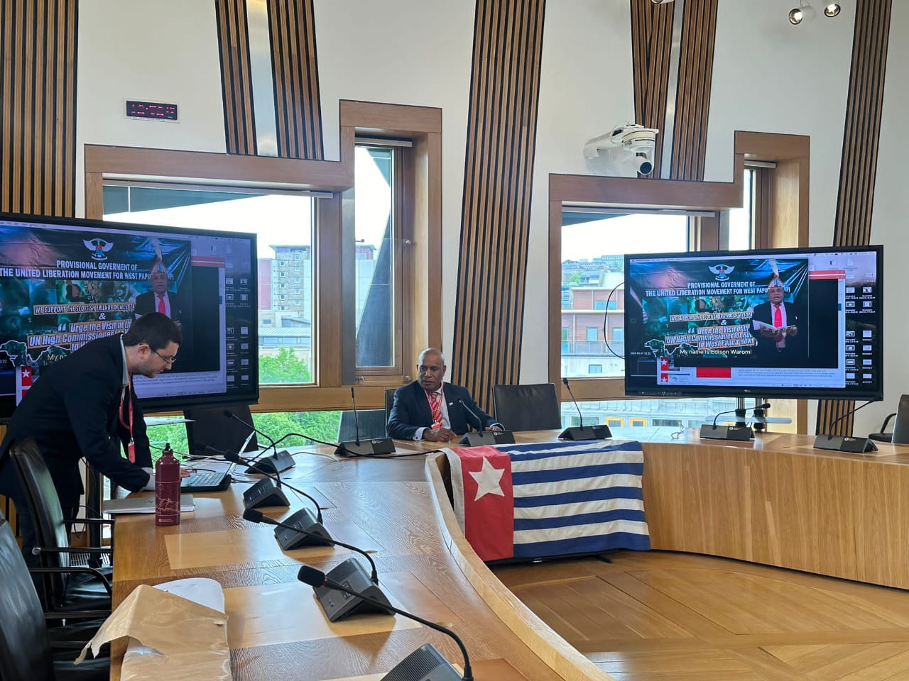 WEST PAPUA, Globalindo.Net // Presiden Benny Wenda Pemerintah Sementara United Liberation Movement for West Papua menghadiri Pertemuan Parlemen Skotlandia diwakili rakyat bangsa Papua yang tak bersuara menyuarakan dukungan hak kedaulatan politik bangsa Papua di parlemen Skotlandia pada 09 Mei 2024