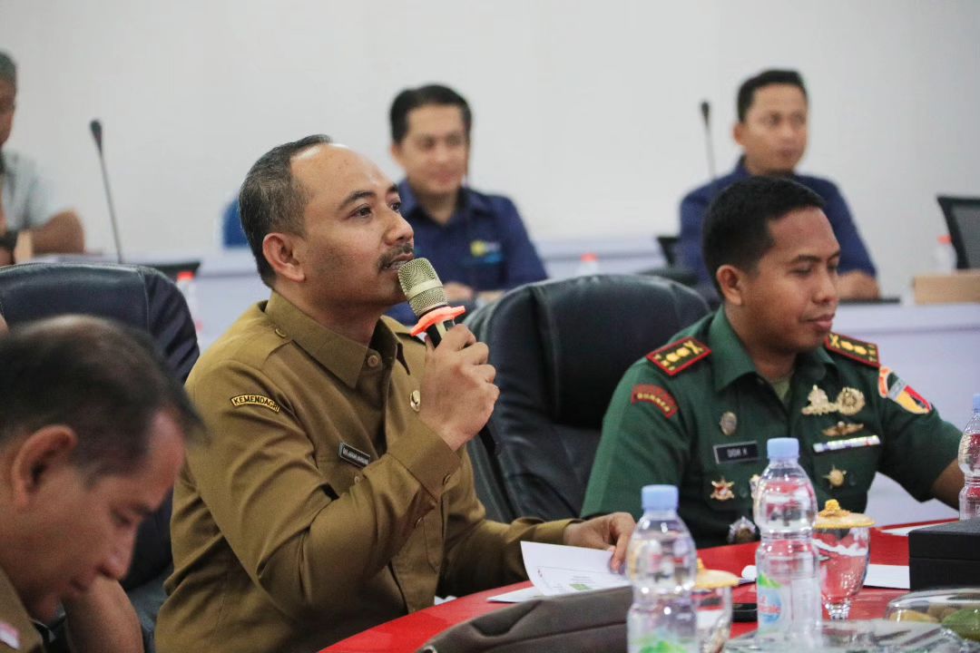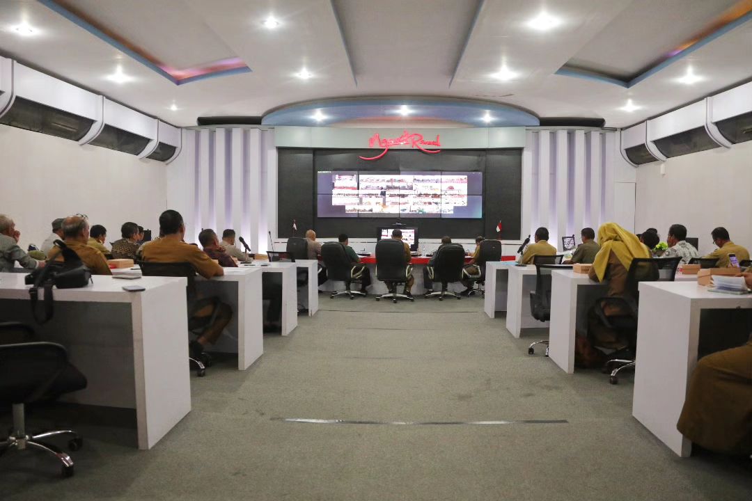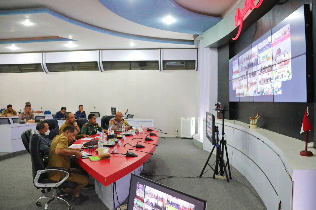 Bupati Ngawi, Ony Anwar Harsono secara memimpin rapat koordinasi pengendalian hama tikus hybrid dari ruang Command Center Sekretariat Daerah, Selasa (04/06/24).