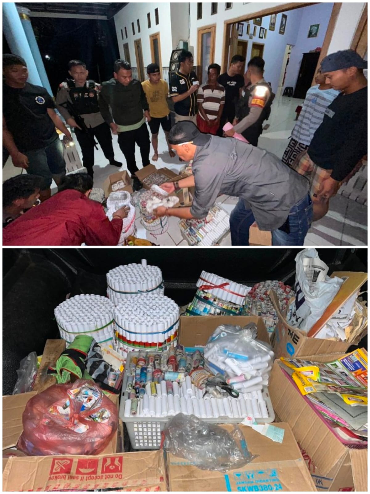 Pada saat digeledah di dalam rumah tersebut ditemukan ratusan bahan peledak atau mercon.