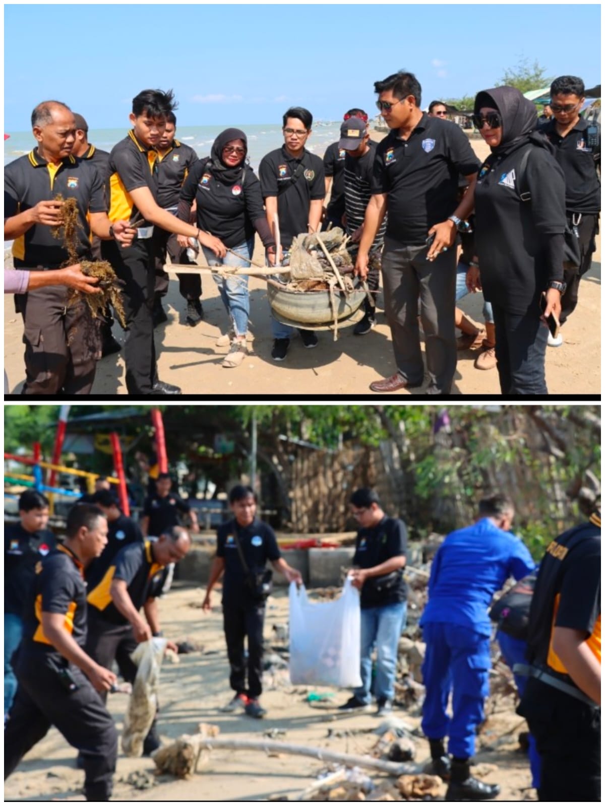 Gerakan Peduli Lingkungan Polres Pamekasan Bersama Media dan Komunitas Vespa Bersihkan Pantai