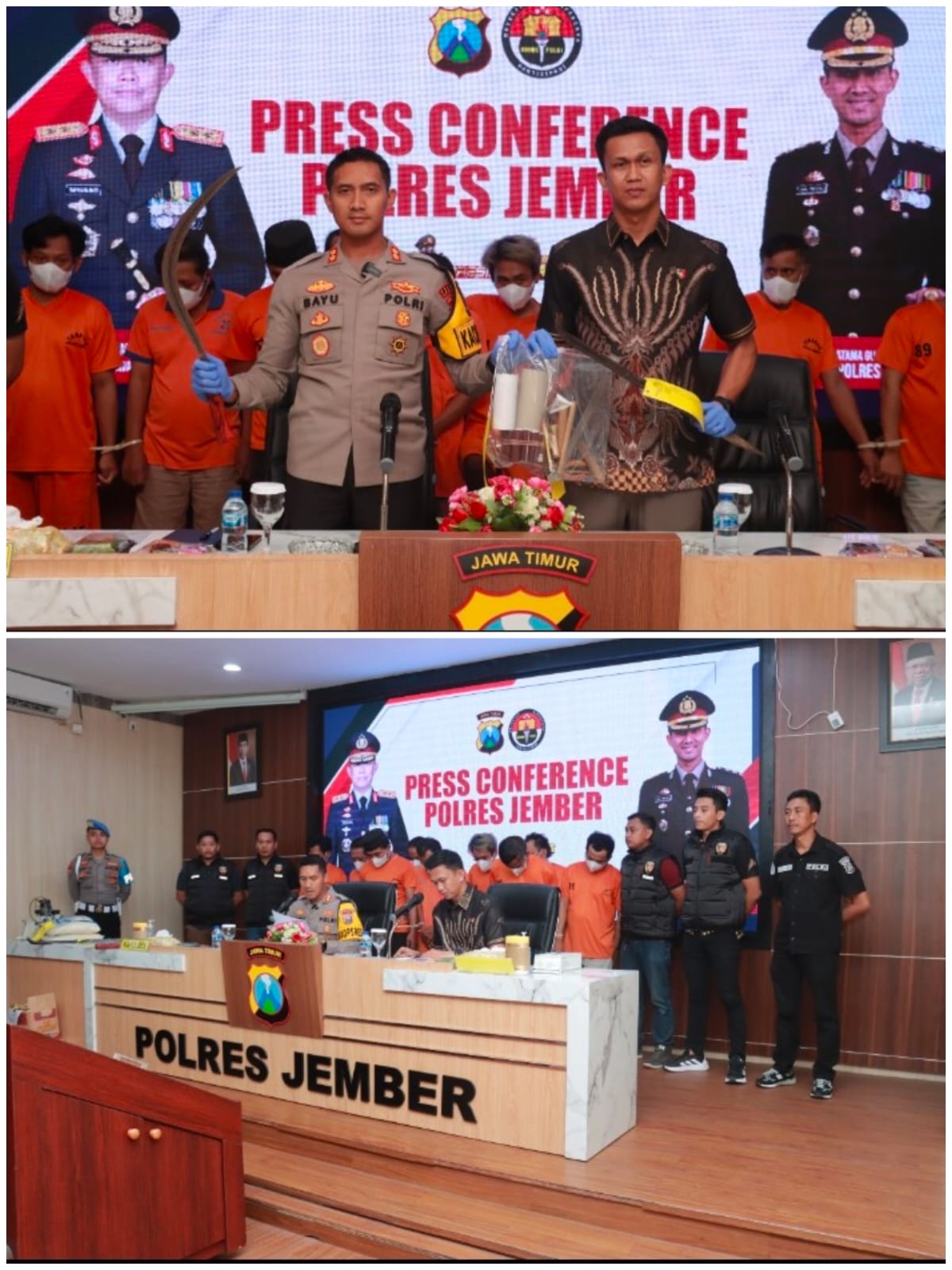 Kapolres Jember, AKBP Bayu Pratama Gubunagi, dalam konferensi pers mengumumkan bahwa selama 11 hari operasi, Polres Jember telah mengungkap total 106 kasus kejahatan.