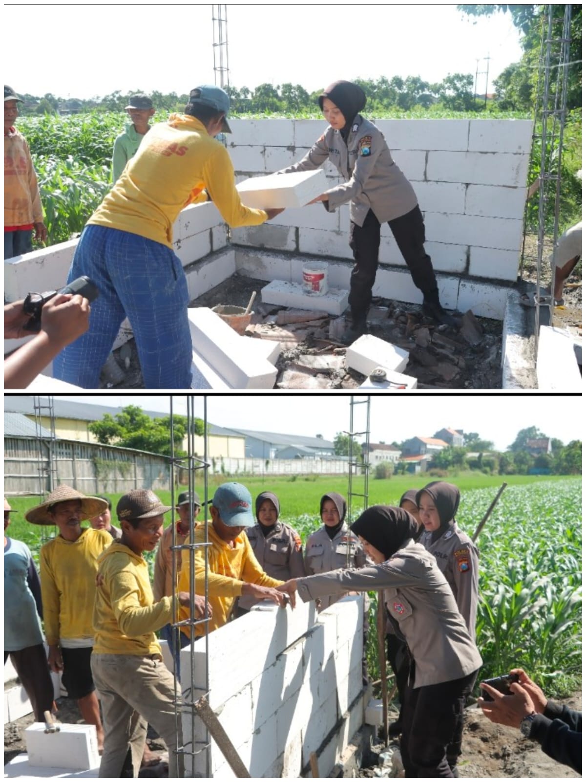 Sejumlah Polwan juga hadir untuk membantu para pekerja memasang bata. Selanjutnya, Polisi bersama para pekerja menggelar syukuran dengan makan bersama di lokasi proyek.