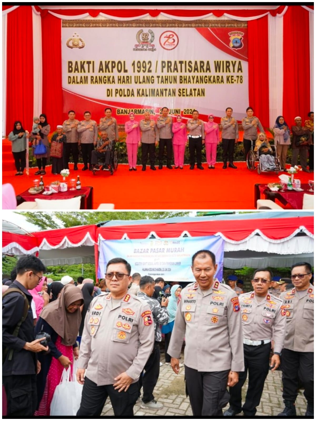 Globalindo.Net//.Angkatan Akpol 1992 yang dikenal Pratisara Wirya menyambut HUT ke-78 Bhayangkara dengan mengadakan kegiatan sosial. Beragam kegiatan digelar mulai dengan bakti sosial dan bakti Kesehatan di Kalimantan Selatan, Minggu (23/6/2024) kemarin.