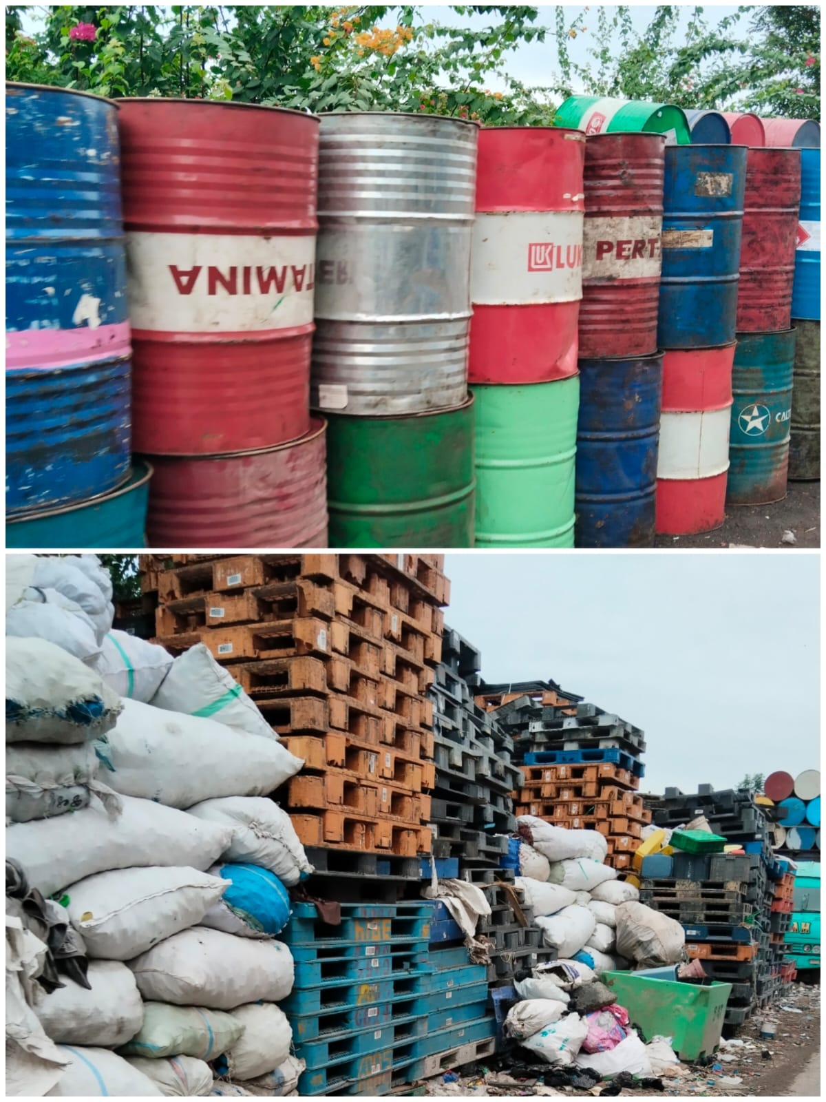 tumpukan barang bekas membuat tumbuhan di lokasi tersebut hampir semua rusak.