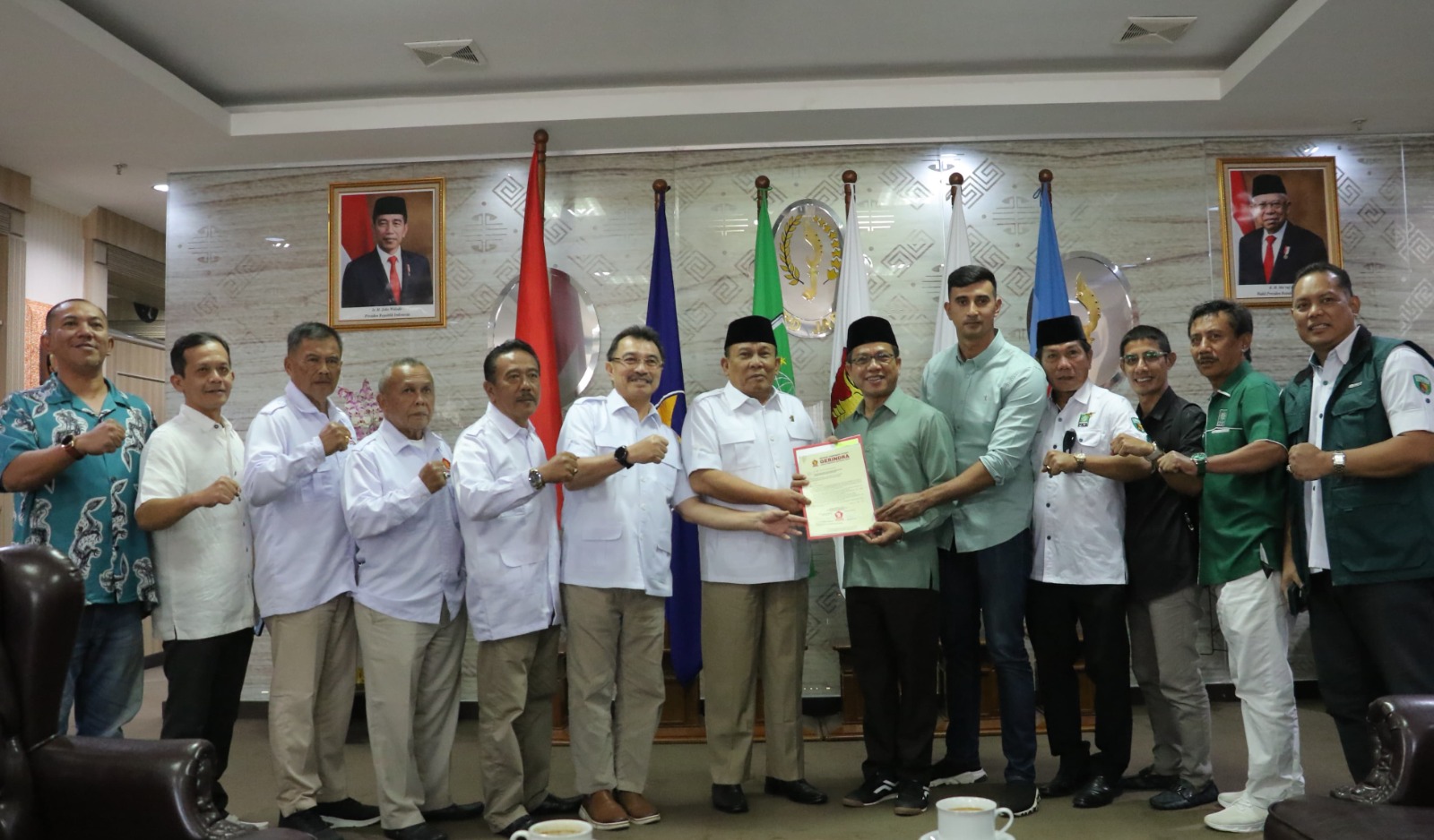 Penyerahan surat rekomendasi disampaikan Ketua DPD Gerindra Jawa Barat Taufik Hidayat kepada Ali Syakieb bersama Dadang Supriatna, di Ruang Kerja Ketua DPRD Jawa Barat, Senin (15/7/2024).
