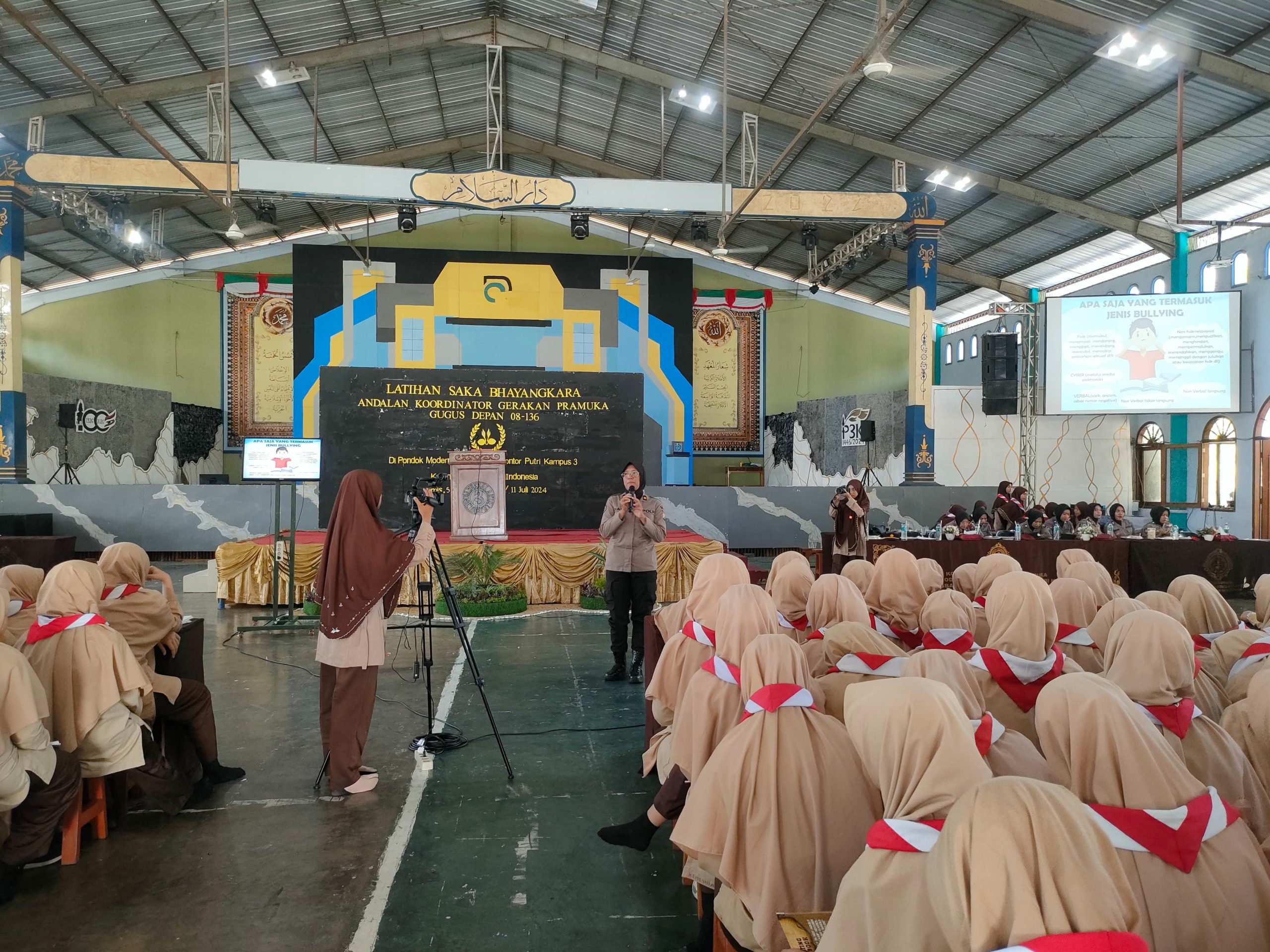Edukasi ini diikuti oleh tiga ratus lima puluh (350) pelajar yang tergabung dalam Pramuka Saka Bhayangkara dan dilaksanakan di aula Pondok Modern Darussalam Gontor Putri Kampus 3 Ngawi.