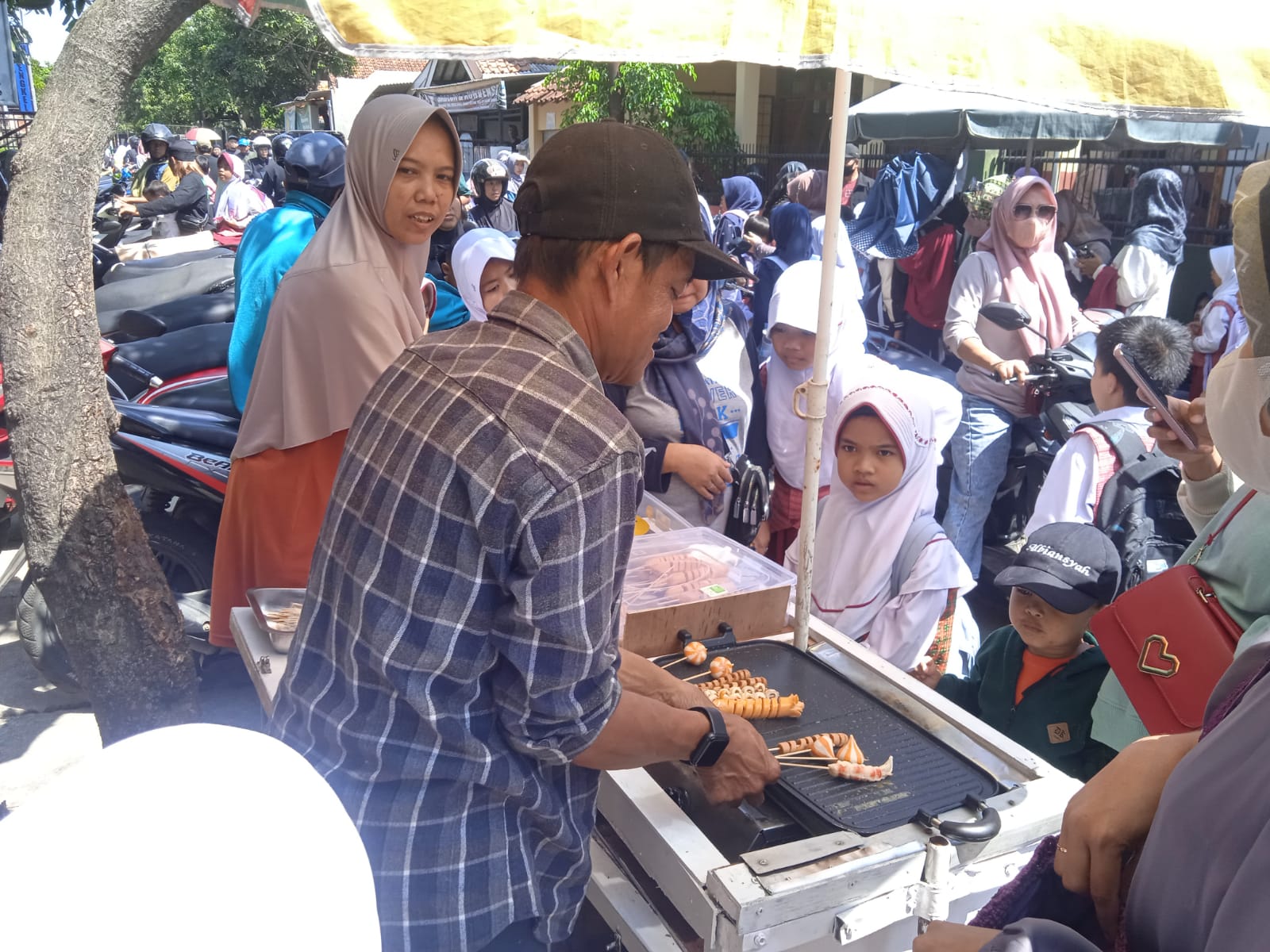 Globalindo.Net // Ajaran baru menjadi berkah tersendiri bagi para pedagang jajanan sekolah. Seorang pedagang Wawan 52 Tahun mengaku senang, dengan masuk nya ajaran baru, itu artinya siswa kembali kesekolah. Semenjak sekolah libur penghasilannya menurun drastis,
