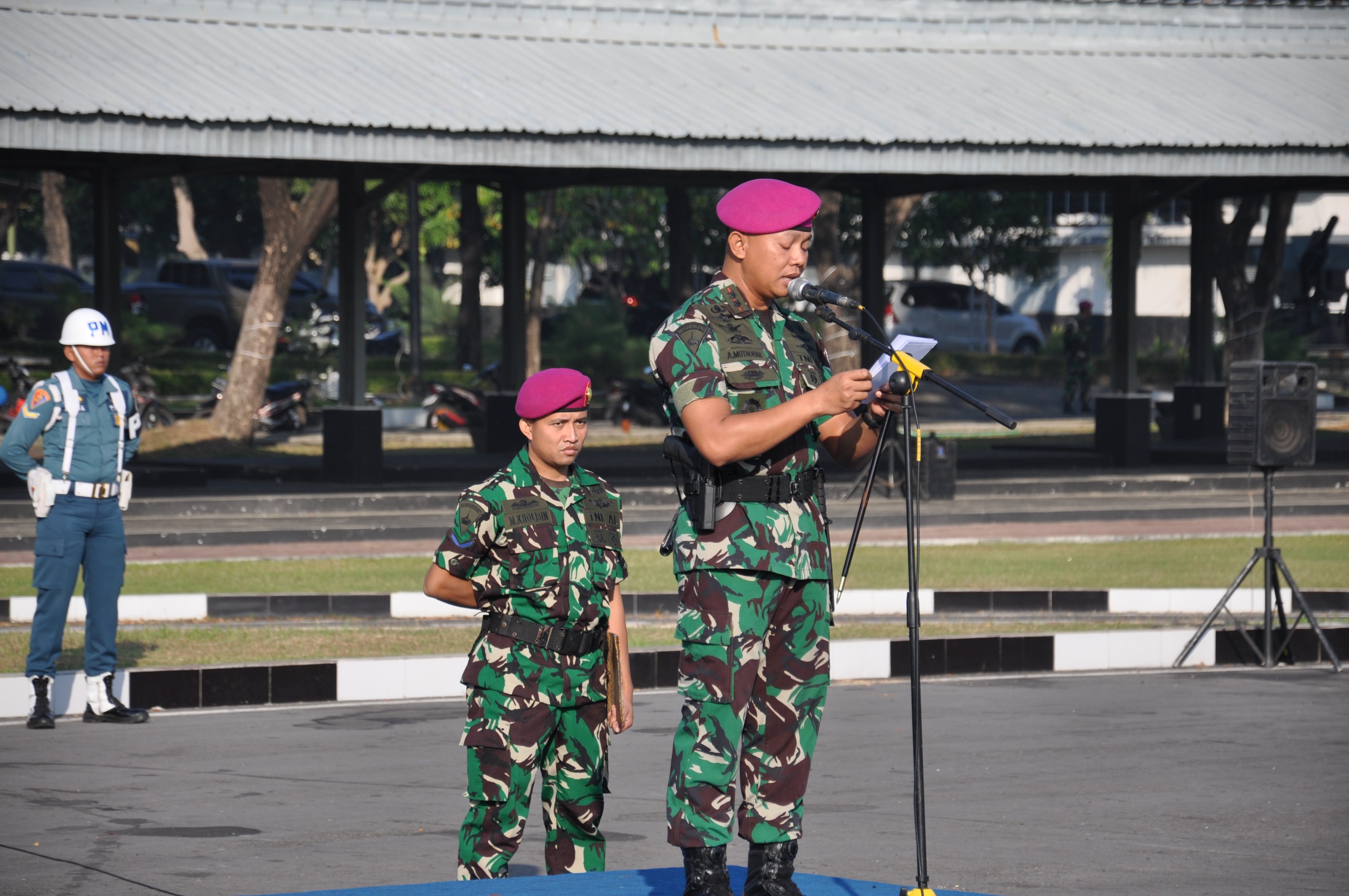 Dihadapan prajurit, Letkol Marinir Muthohar, S. Hub., Int., CACA., CRMP., membacakan amanat Panglima TNI Jenderal TNI Agus Subiyanto, S.E., M.Si., bahwa kita prajurit TNI adalah Garda Terdepan dan benteng terakhir bangsa Indonesia, dengan itu saya berharap seluruh prajurit sekalian untuk senantiasa berwaspada dan bersifat adaftif terhadap segala perkembangan lingkungan strategis demi keutuhan NKRI.