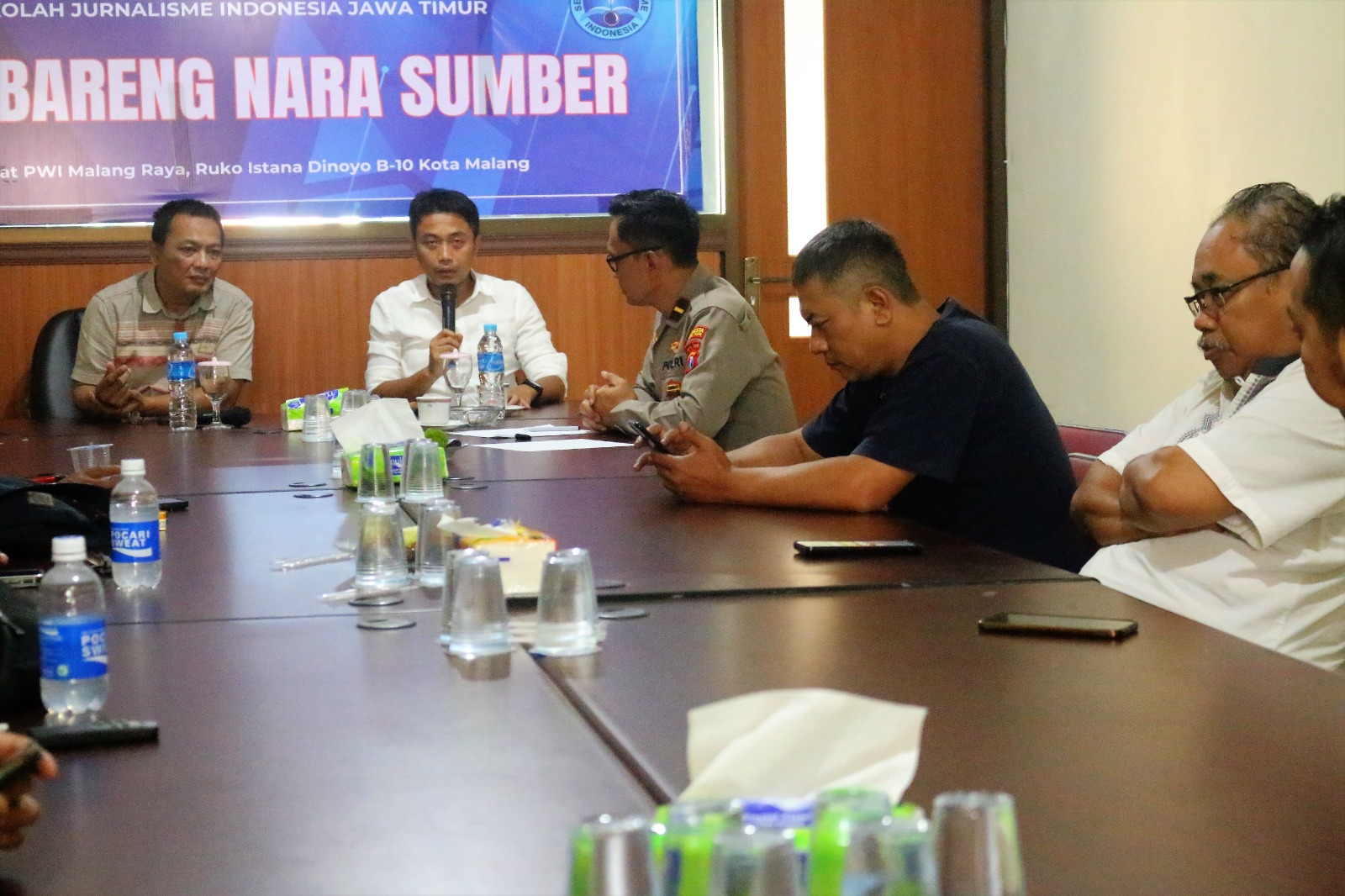 Langkah strategis disampaikan Kapolresta Malang Kota, Kombes Pol Budi Hermanto yang diwakili Kasat Intel Kompol Ferry Darmawan didampingi Kasi Humas Ipda Yudi Risdianto saat Diskusi Politik di kantor PWI Malang raya.