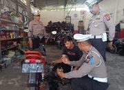 Kali ini di pimpin Kasat Lantas Polres Ponorogo AKP Jumianto Nugroho bersama anggotanya mengunjungi sejumlah bengkel motor di wilayah perkotaan untuk mensosialisasikan terkait knalpot tidak sesuai spectek.