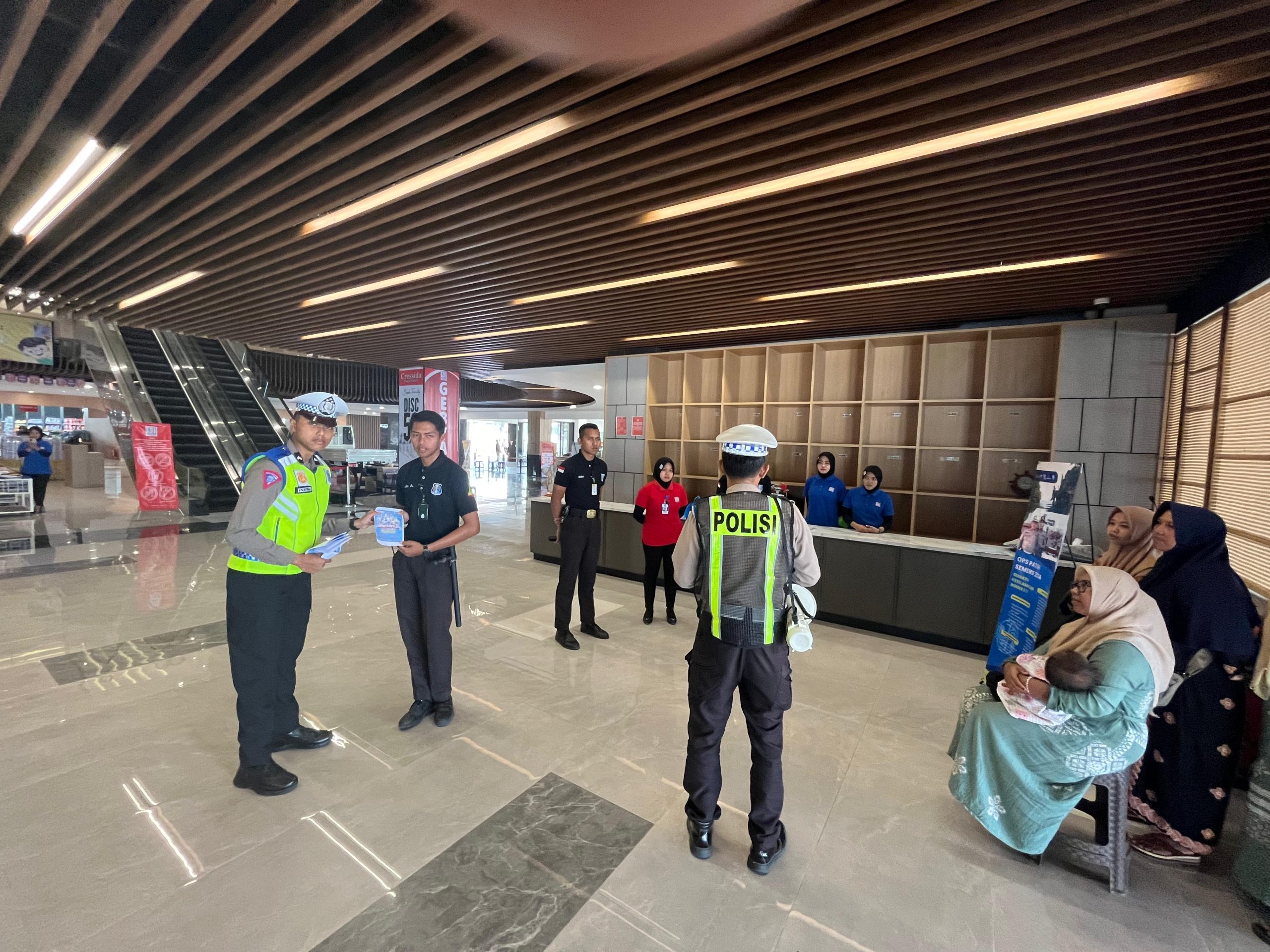 Kepada pengunjung di pusat perbelanjaan, petugas menghimbau agar menjadikan tertib berlalulintas sebagai budaya.