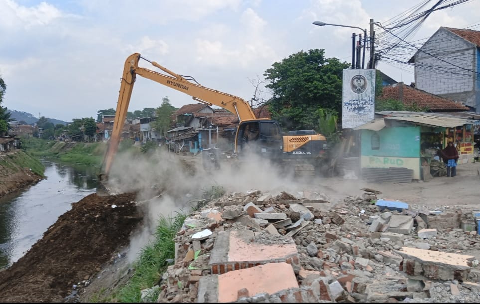 Satgas Citarum Harum juga memfasilitasi alat berat untuk membongkar bagian bangunan yang sulit dibongkar sendiri.