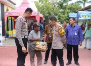 Saat berada di kantor Samsat, nampak Kapolres Tuban memborong jualan pedagang asongan dan diberikan kepada masyarakat yang sedang menunggu antrian.