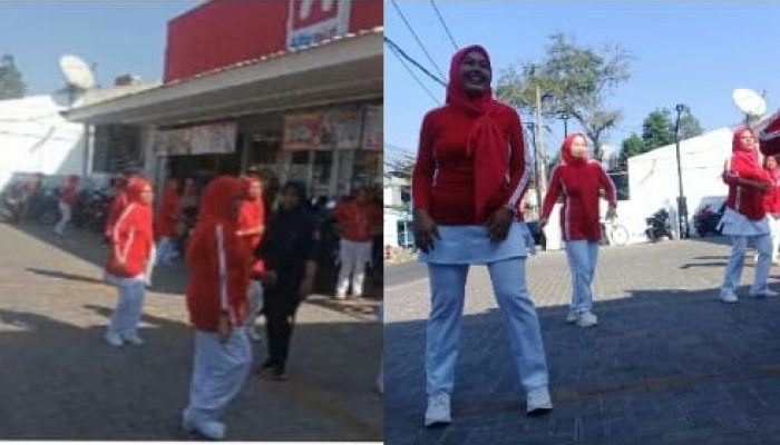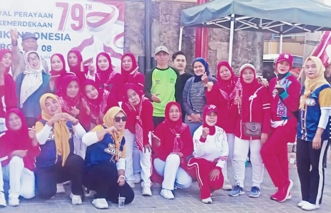 Semangat nampak dari ibu-ibu peserta lomba senam dalam.memeriahkan HUT-RI Ke-79 tersebut.