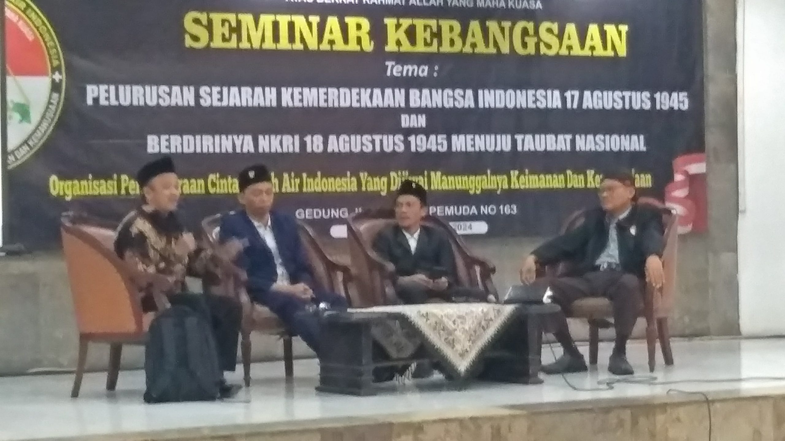 Seminar Kebangsaan Pelurusan Sejarah 17 Agustus 1945 Hari Kemerdekaan Bangsa Indonesia Agar jangan Terus Dosa pada Pahlawan Bangsa.
