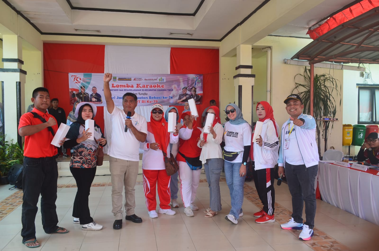 Perlombaan karaoke terlihat semakin meriah saat Camat dan Sekcam Cikarang Timur membagikan dorprize untuk para penonton.