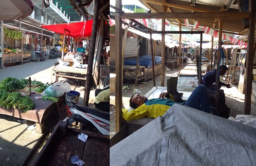 Tidak menyurutkan langkah, saya terus masuk kedalam pasar. Jam 10 siang pasar agak lengang. Para pedagang terlihat santai merapikan dagangan sementara yang lain sibuk melihat gawai ditangannya disamping sebagian lainnya lagi sudah mulai berkemas untuk menyudahi usahanya.