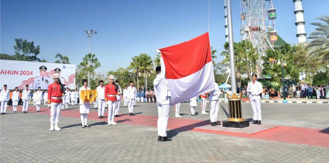 LAMONGAN, Globalindo.Net // Pengibaran Bendera Merah Putih dalam Upacara Peringatan HUT Ke-79 Republik Indonesia, yang dilaksanakan pada Sabtu (17/8) di Alun-alun Lamongan berjalan sukses. Pasukan pengibar bendera yang bertugas berhasil melaksanakan tugas dengan baik sesuai yang diharapkan.