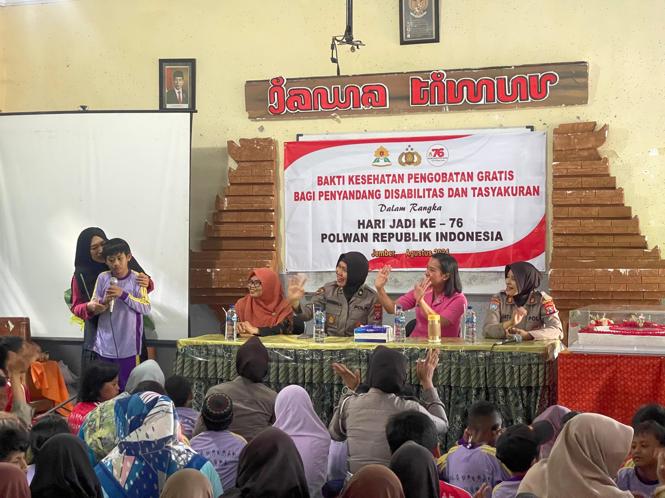 JEMBER – Globalindo.Net// Dalam rangka memperingati Hari Ulang Tahun (HUT) ke-76 Polisi Wanita (Polwan), Polres Jember menggelar serangkaian kegiatan Bhakti Kesehatan dan Tasyakuran di Sekolah Dasar Luar Biasa (SDLB) Negeri Jember.