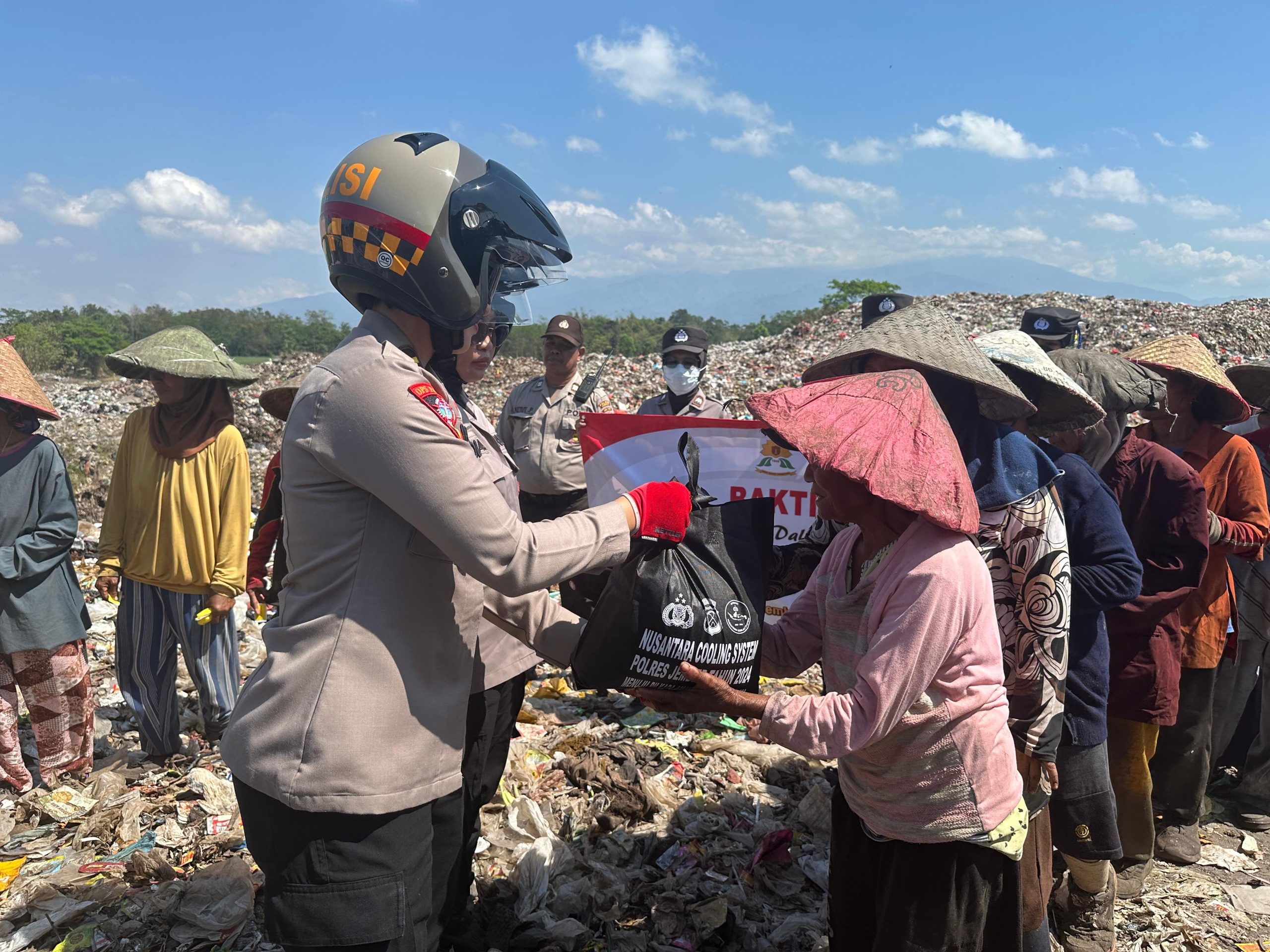 Kali ini kegiatan Baksos tersebut berlangsung di Tempat Pembuangan Akhir (TPA) Kecamatan Pakusari, Kabupaten Jember, yang diikuti oleh sejumlah Polwan senior serta seluruh anggota Polwan Polres Jember.